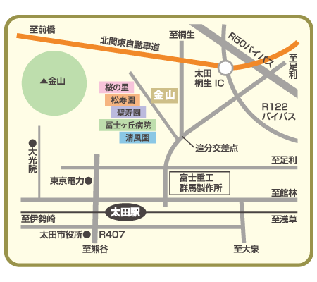 電車の場合/東武伊勢崎線・桐生線・小泉線「太田駅」よりタクシーで5分